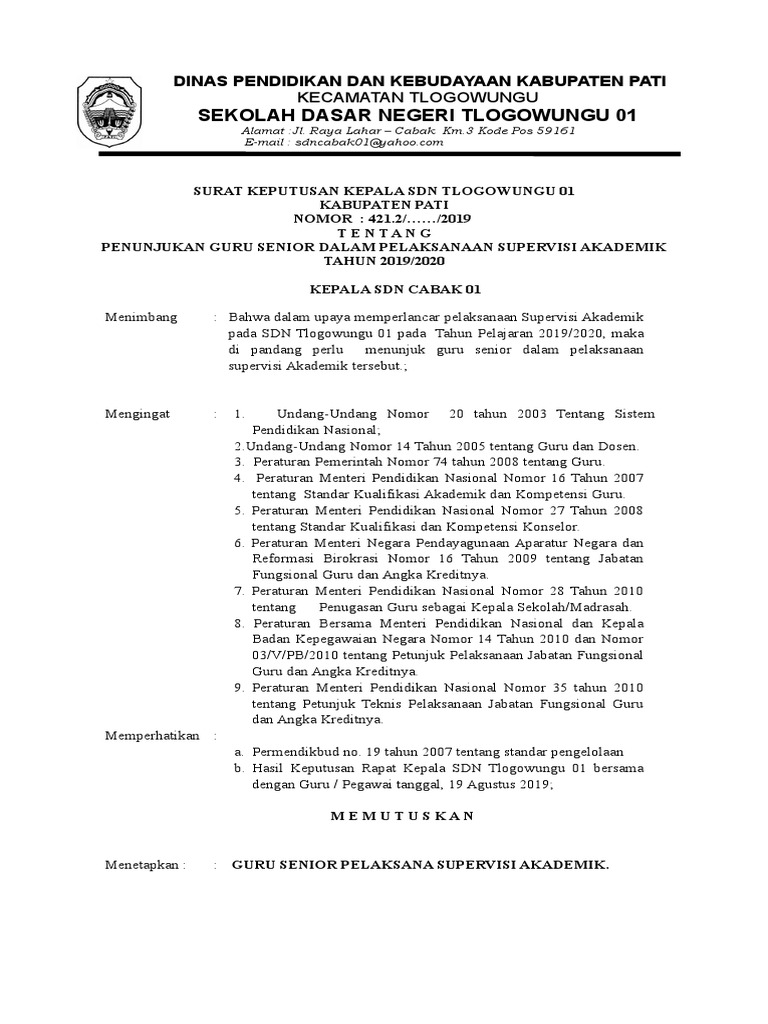 Sk Pendelegasian Supervisi Kepada Guru Senior Cara Golden from lh5.googleusercontent.com Lampiran (sk tim pendataan sekolah) 3. Text of sk penunjukkan instruktur. Surat keputusanpimpinan lpk istibank surakarta penunjukan instruktur di lpk istibank surakarta pimpinan lpk istibank surakarta menimbang : Bupati landak, karolin margret natasa. Salah satunya adalah format sk penunjukan pengguna aset desa. Dan berikut dibawah ini adalah contoh sk penunjukan petugas pengelola beasiswa pip di sekolah. Sk penunjukan waka.gr.senior untuk supervisi smk.docx. Dalam pelaksanaannya diperlukan penunjukan petugas pada satuan unit kerja / sekolah agar lebih efektif dalam realisasinya.